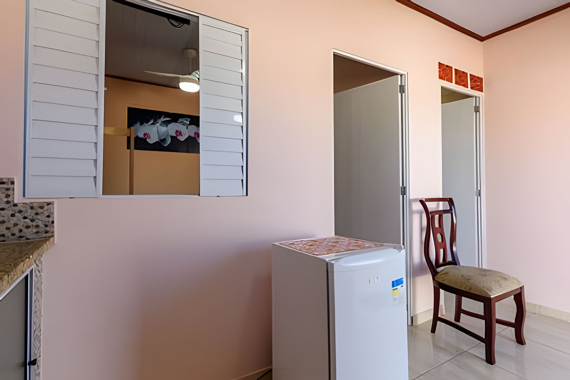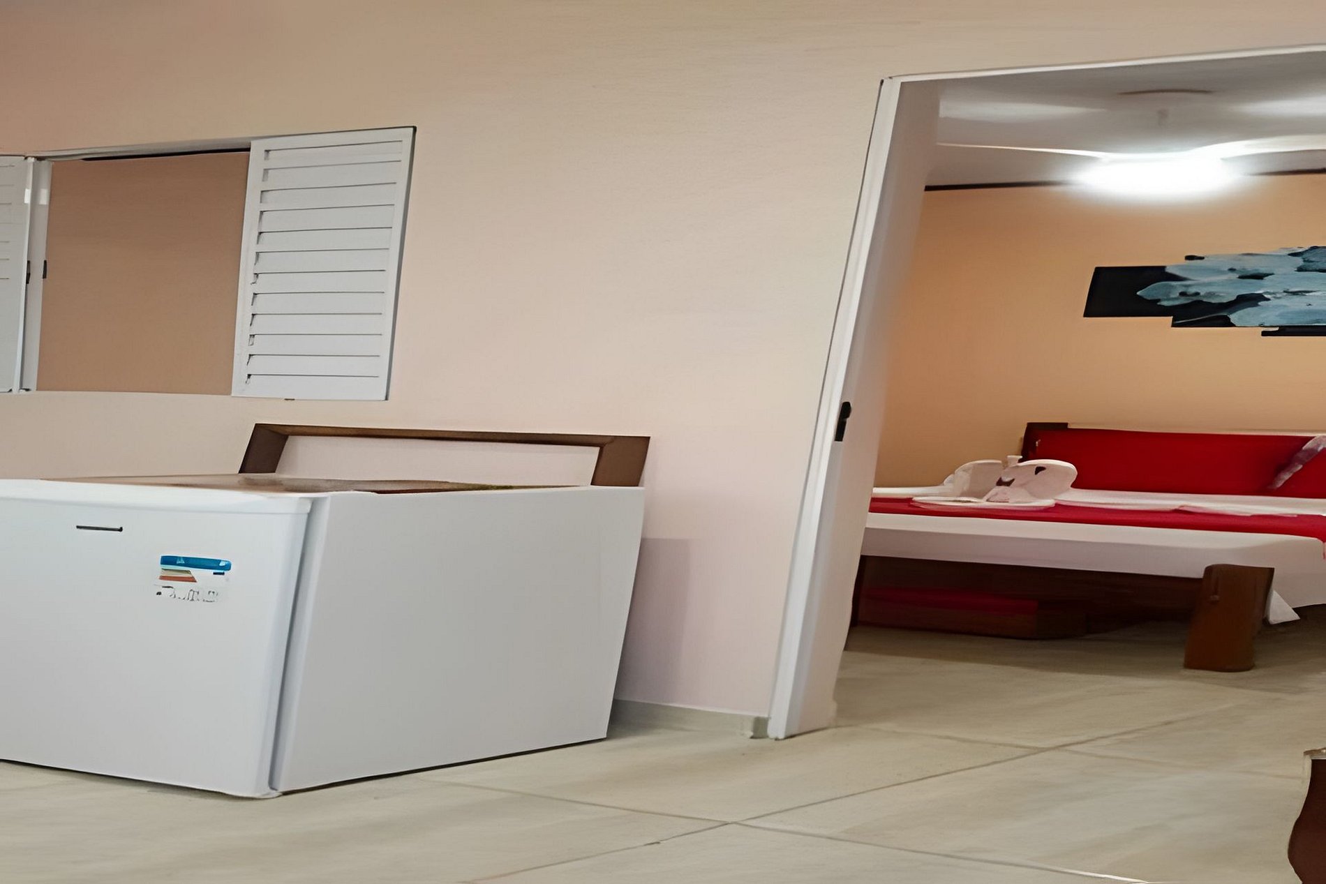 ✅ Suíte para até 2 pessoas (1 CAMA CASAL). ✅ Todos os quartos: TV, WiFi, ventilador, frigobar. Banheiros: sabonetes ✅ Pequena cozinha com pia, frigobar, sanduicheira, cafeteira, copos, talheres, pratos, açúcar, café, descartável para tomar café. ✅ Não servimos café da manhã. ✅ Roupas de cama e banho: são fornecidas.