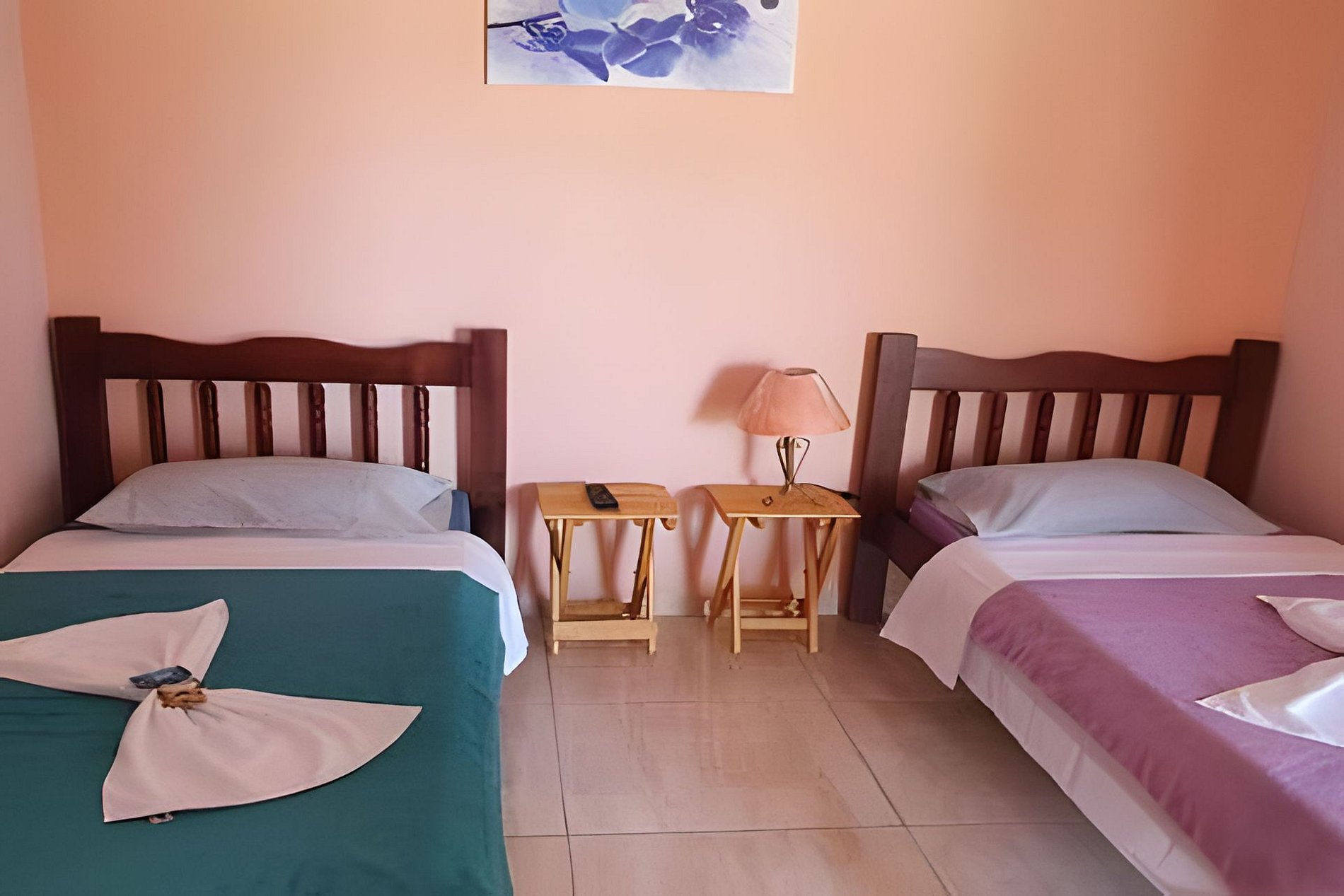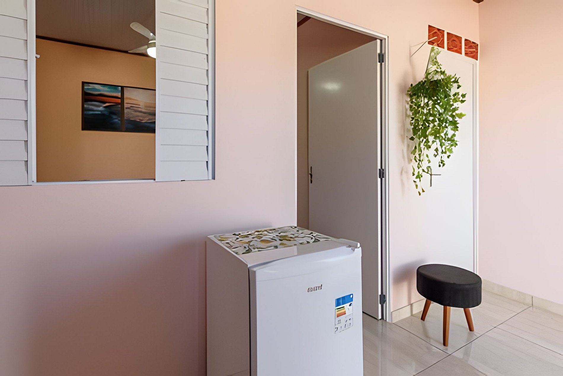 ✅ Suíte para até 3 pessoas. ✅ Todos os quartos: TV, WiFi, ventilador, frigobar . Banheiros: sabonetes ✅ Pequena cozinha com pia, frigobar, sanduicheira, cafeteira, copos, talheres, pratos, açúcar, café, descartável para tomar café. ✅ Não servimos café da manhã. ✅ Roupas de cama e banho: são fornecidas.